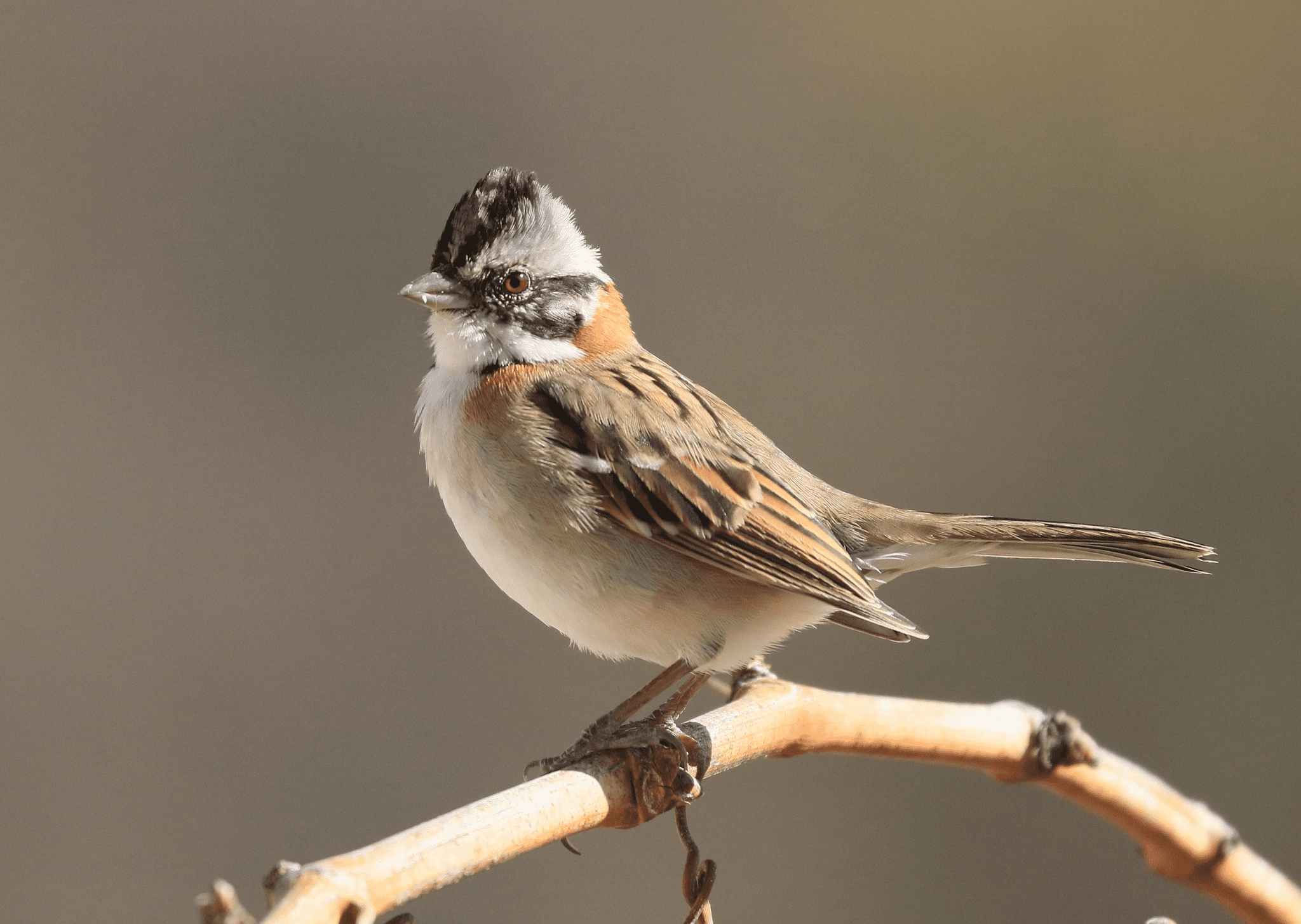 Dorso estriado de negro. Corona y mejillas grises separadas por líneas negras. Cuello dorsal canela. Semicollar negro y canela. Ventral blancuzco.