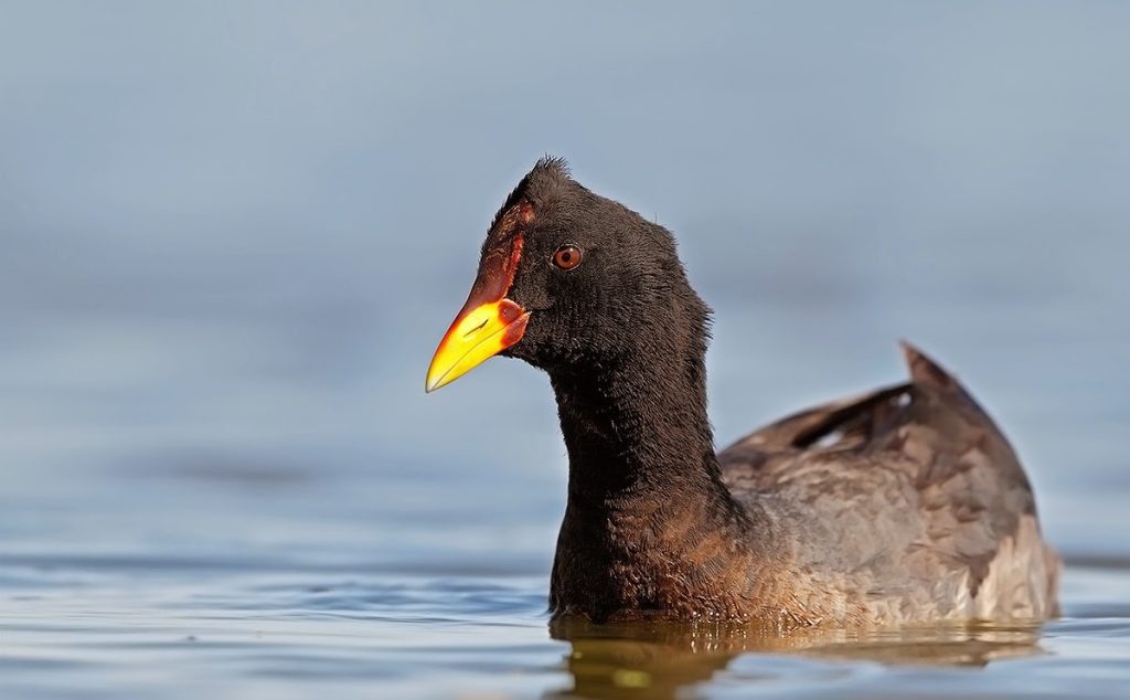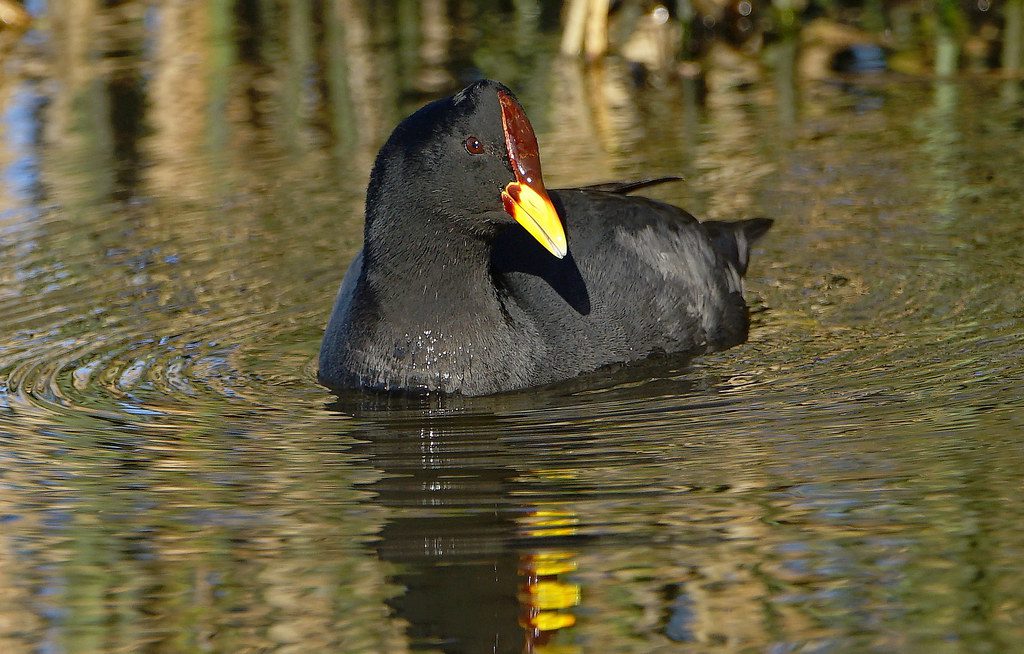 Desconfiada. Se oculta entre vegetación acuática. Pico amarillo con escudete lacre. Subcaudal blanco notable.