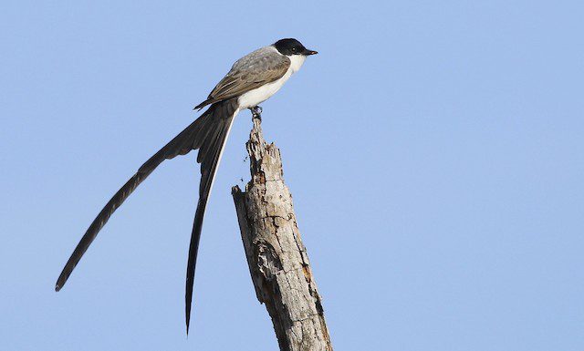 Ave notable por su larguísima cola. Habita ambientes abiertos.